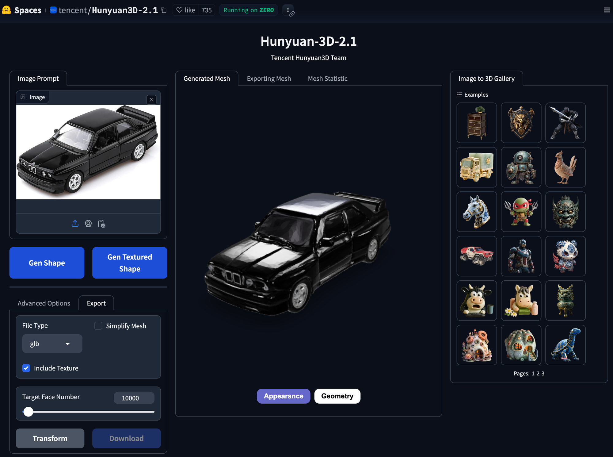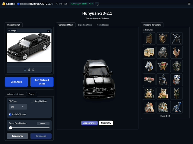 Tencent has released the code, model weights, a Blender add-on, and a demo interface, all available on GitHub. You can run it locally if you have a capable GPU, or use the hosted version like I have available from Huggingface Spaces. This is free to use, it is also free to use on your own infrastructure, if you run your own version of the model locally or in a cloud service.
