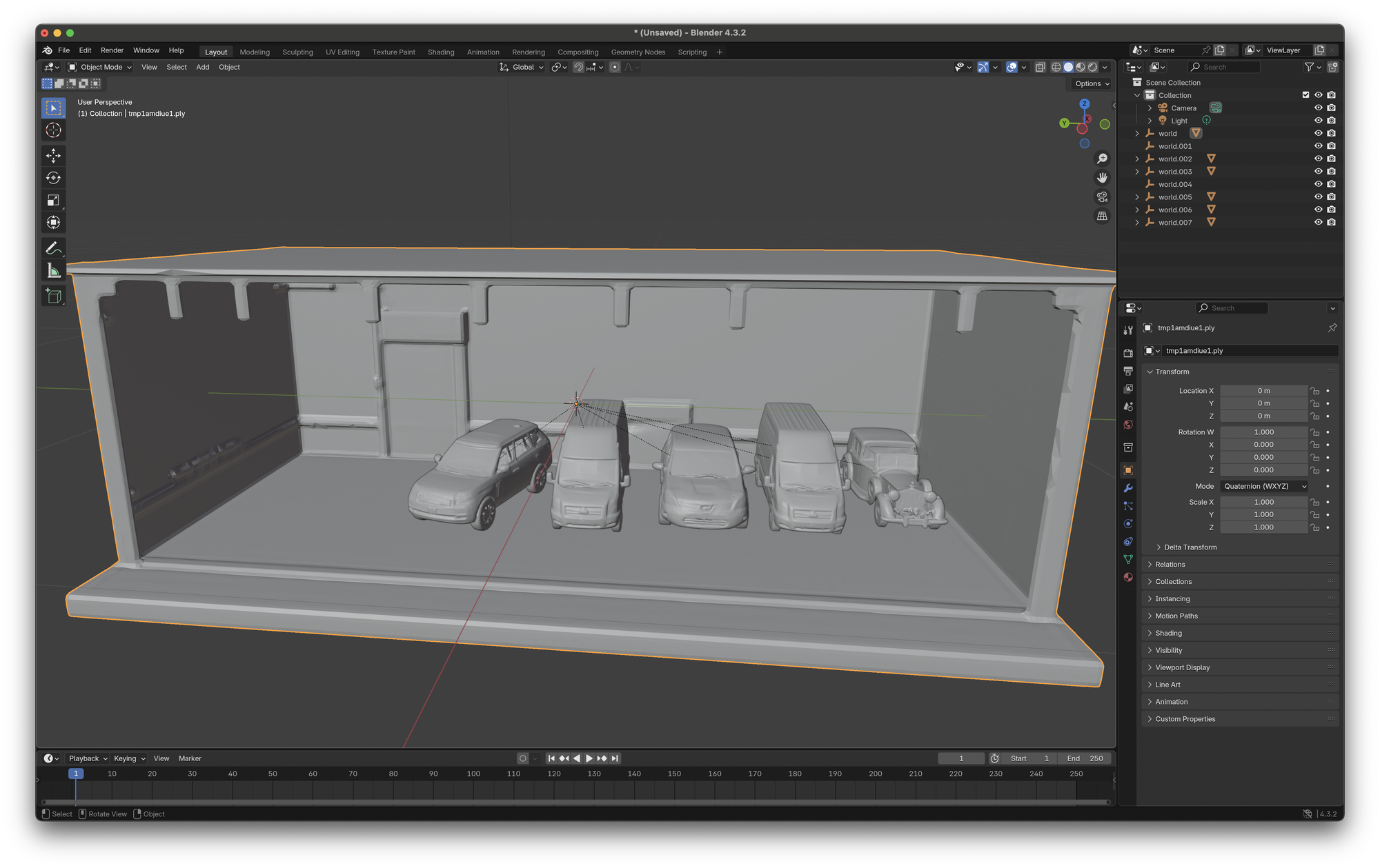 bpy.ops.import_scene.gltf(filepath=car_path)Importing the Diorama: