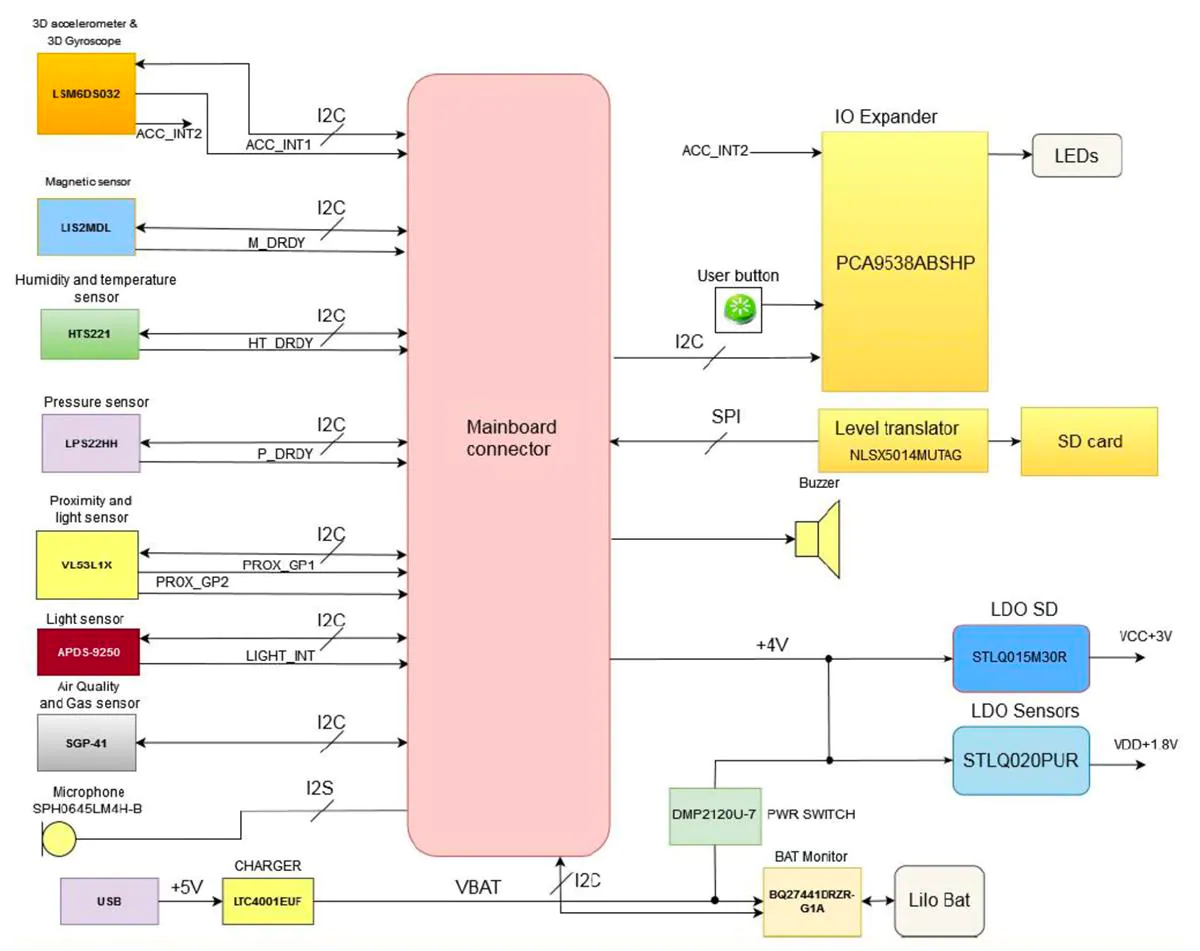 The CommonSense expansion board, produced by SensiEDGE, provides an array of new sensor capabilities to Spresense, including a 3D accelerometer, gyroscope, temperature, humidity, pressure, proximity, ambient light, UV, air quality gas, and magnetic sensors.