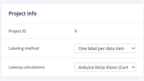 When you start with the project, make sure to select the Arduino Nicla Vision (Cortex-M7 480MHz) in the dashboard view to enjoy the latency calculation feature for this board: