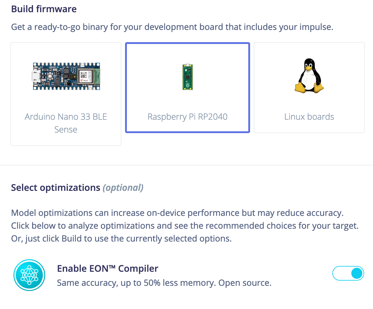To pave the road for developers, educators, and machine learning researchers, we decided to launch the first version of RP2040 support with Pico board as the main target. Having said that, other RP2040-based boards can run both data collection firmware and trained models, with some changes to the source code to account for differences between the boards. For more details check out “Using with other RP2040 boards."