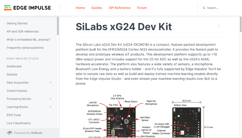 Begin building your industrial-grade embedded machine learning applications for the Silicon Labs xG24 Dev Kit today with our getting started guide.
