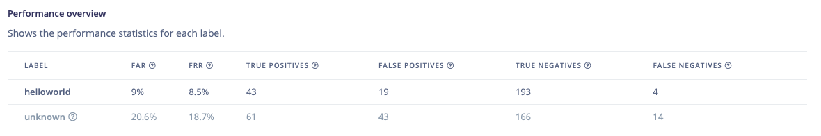 Since every application is unique, a developer can select the specific trade-off that works best for their product. The output of each trade-off can be explored and compared, using industry standard metrics like False Activation Rate (FAR) and False Rejection Rate (FRR).