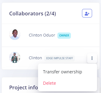 The user will be automatically added to the project and will get an email notification inviting them to start contributing to your project. To remove a user, simply click on the three dots besides the user then tap ‘Delete’ and they will be automatically removed.