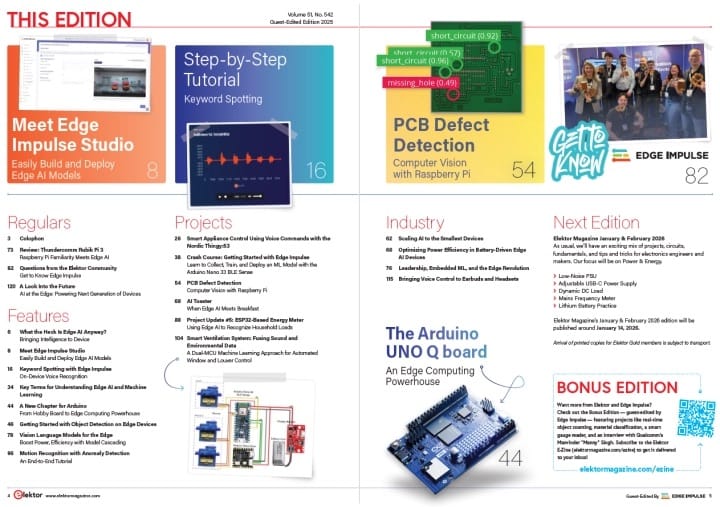After spending much of 2025 hard at work with Elektor magazine, we're thrilled to reveal our collaboration: the Edge Impulse Guest-Edited Elektor Special Edition.