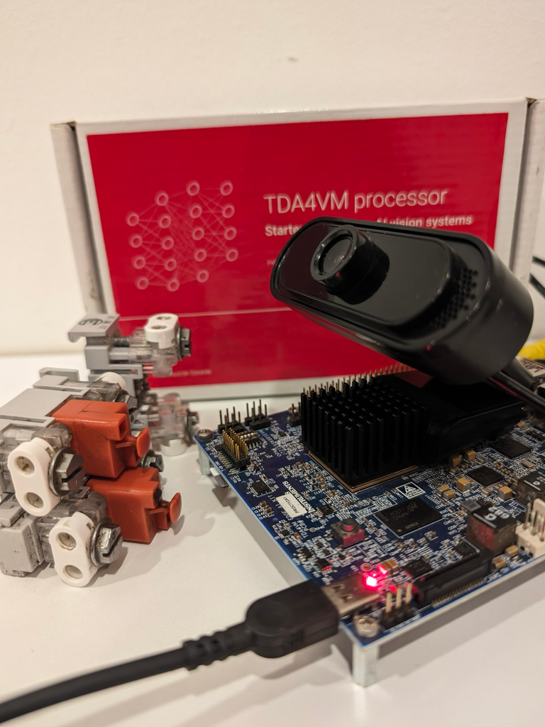 Computer vision algorithms tend to be very expensive computationally, but due to the efficiency of the FOMO-AD model, Bandini was able to easily run it on edge computing hardware to keep costs and latency down. In this case, he selected the Texas Instruments SK-TDA4VM development kit. The onboard TDA4VM processor offers eight trillion operations per second of hardware-accelerated AI processing power, which is well more than what is required for the project. Yet the SK-TDA4VM is also inexpensive and requires little power for operation, making it suitable for large-scale deployments. He then paired the kit with a USB webcam to allow it to capture images of components for anomaly detection.