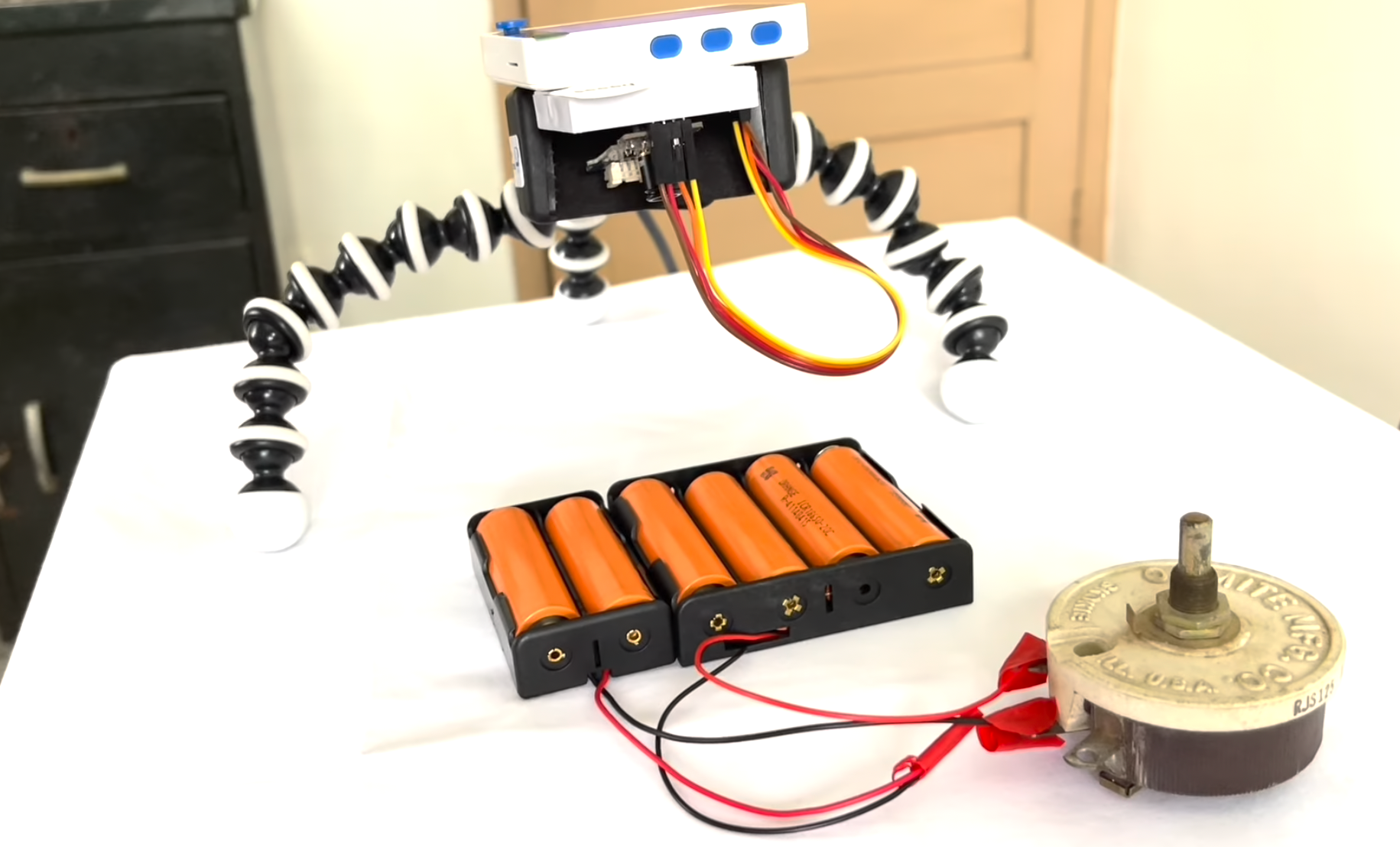 The simple prototype hardware design consists of an off-the-shelf MLX90640 thermal camera with 24 x 32 pixel resolution and a Wio Terminal. The Wio Terminal provides a 2.4-inch LCD screen and an integrated Arm Cortex-M4F MCU running at 120MHz. These were wired together, then positioned on a stand facing downwards. A battery pack with six lithium-ion cells was placed below the thermal camera to prove out the concept. Sivan connected the battery to a rheostat to serve as the load, then set about collecting thermal images.