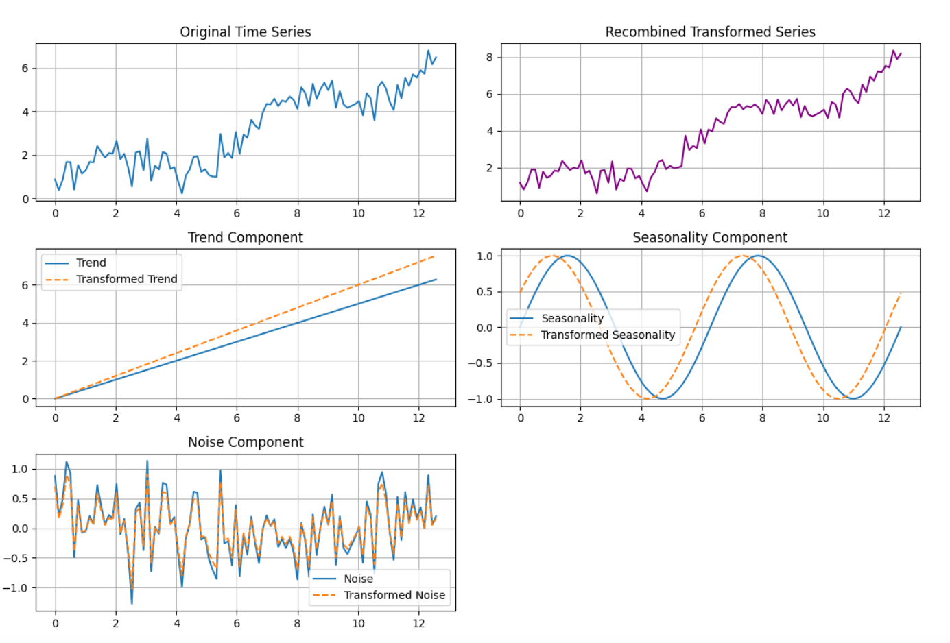 Our method decomposes a time series into these components, applies transformations to each component individually, and then reconstructs a new series. This ensures the augmented data retains the structural integrity of the original.