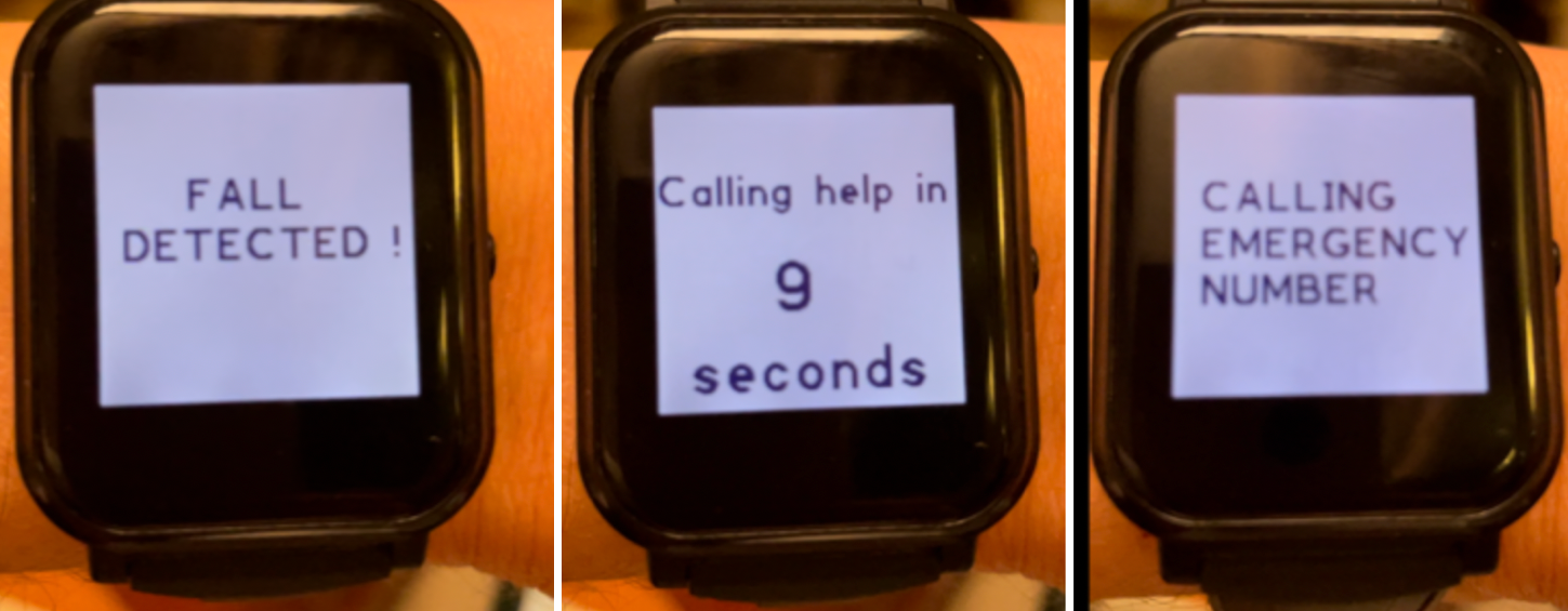 To finish up the project, Vikstrom developed an app for his smartwatch that could receive predictions from the model running on the Nicla Sense ME via Bluetooth Low Energy. When the anomaly scores exceeded the previously determined threshold, the watch would simulate making a call to emergency services for help. As an additional safeguard against false alerts, the watch counts for 10 seconds before making the call, and the wearer can cancel the process by tapping the screen.