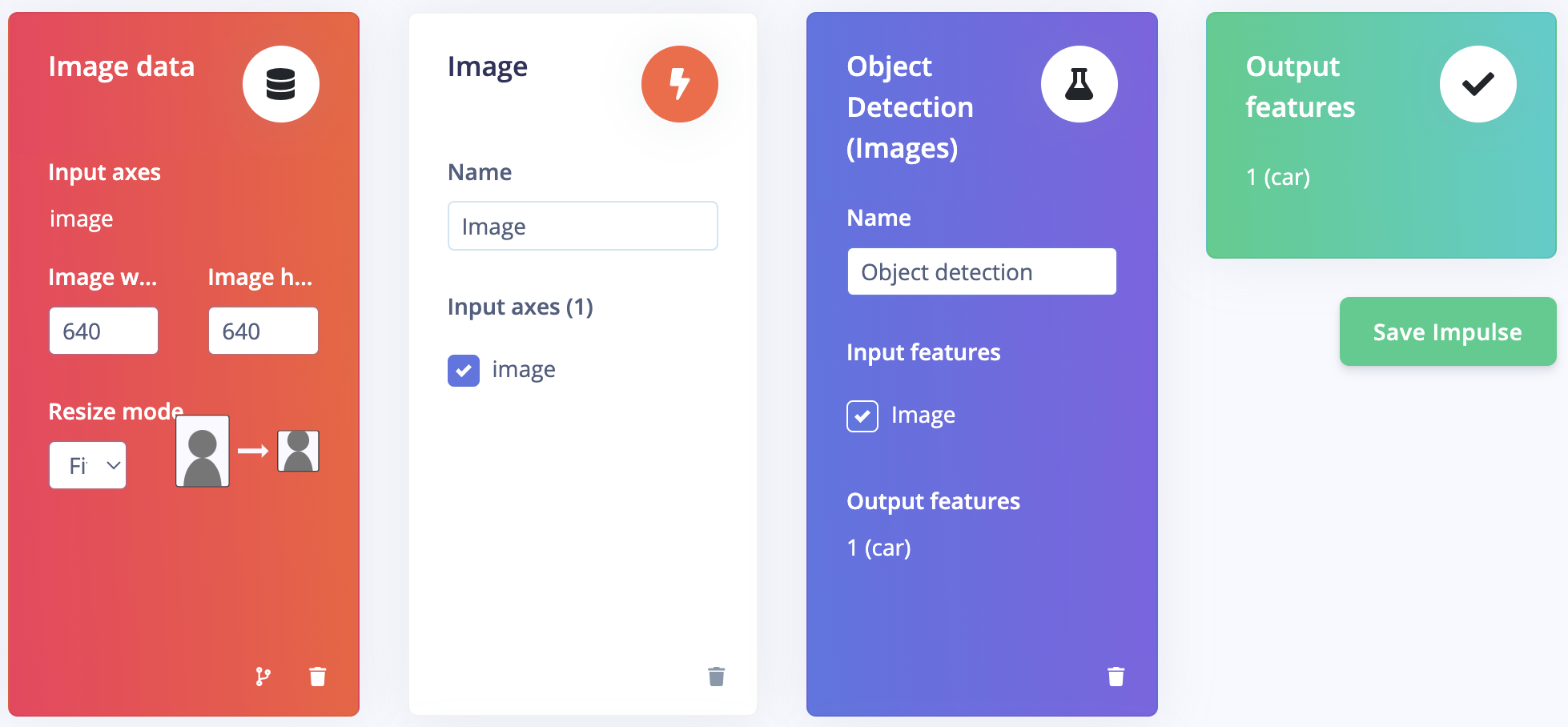 Kumar then designed the impulse, which defines the set of steps that the processing pipeline will take in handling the data. It covers data processing from the moment raw data is collected by the camera until the model predicts the locations of cars in the image. For this project, the impulse first resizes images to reduce their resolution, as this will reduce the computational complexity of downstream steps. Next, the most relevant features are calculated and forwarded into a YOLOv5 object detection algorithm with 7.2 million parameters.