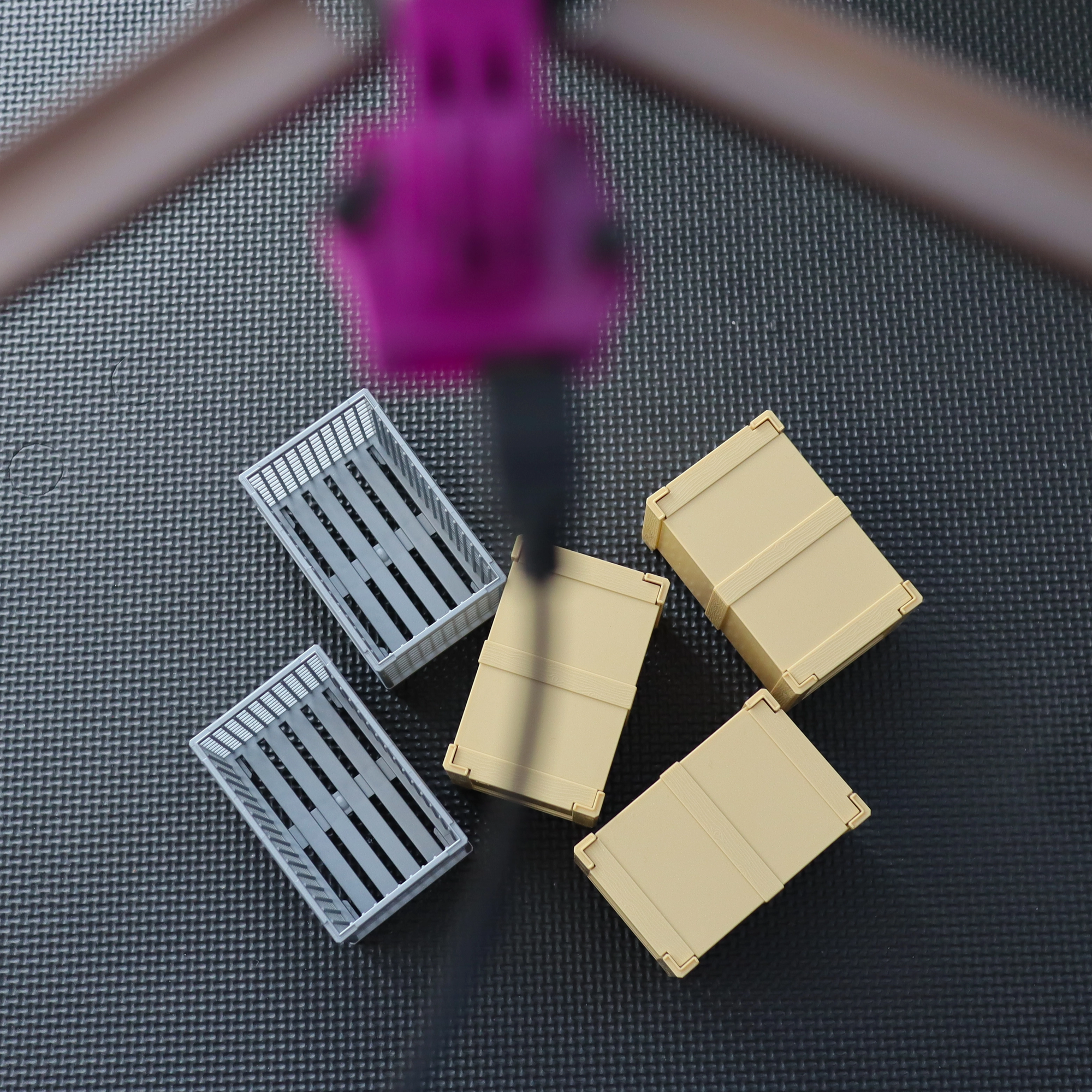 To prove the concept, two types of miniature, plastic containers were arranged in varying patterns and under differing conditions to assist the model in generalizing to recognize the containers under any circumstances. A small dataset of 81 images of this setup was collected using the Arduino Nicla Vision and the OpenMV IDE. A new project was created in Edge Impulse Studio, then these images were uploaded using the data acquisition tool.