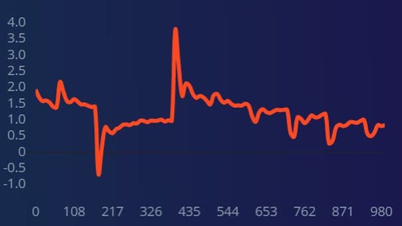 It seemed too easy to have the motor simply spin at a constant velocity, so I used a Python script to make it change velocity pseudo-randomly. This was its movement more closely resembled that of, say, a robotic arm joint. This is the resulting power signal: