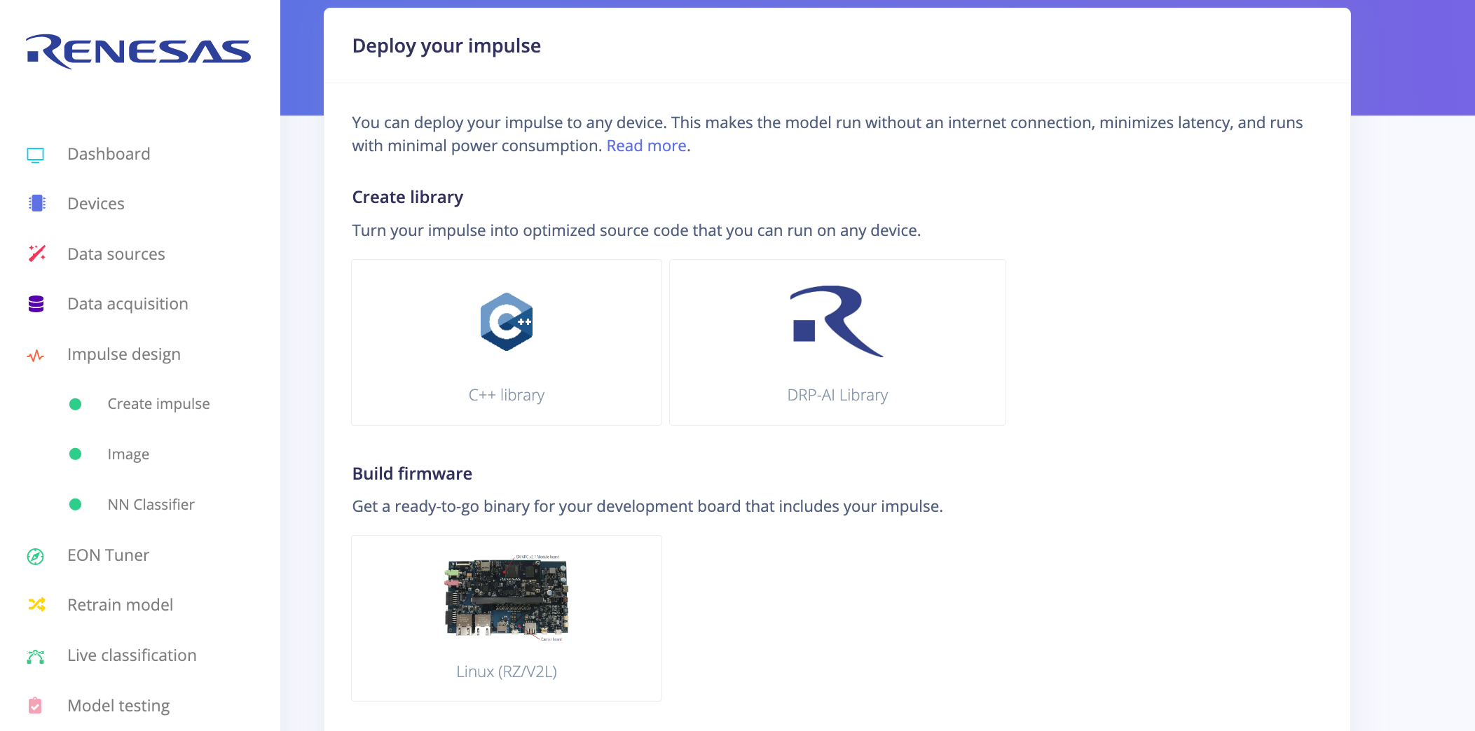 We are very excited to see what you come up with using the Renesas RZ/V2L and Edge Impulse. Please post your questions and any projects you create over on our forum or tag @EdgeImpulse and @RenesasGlobal on social media!