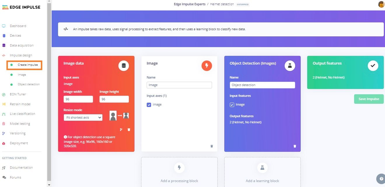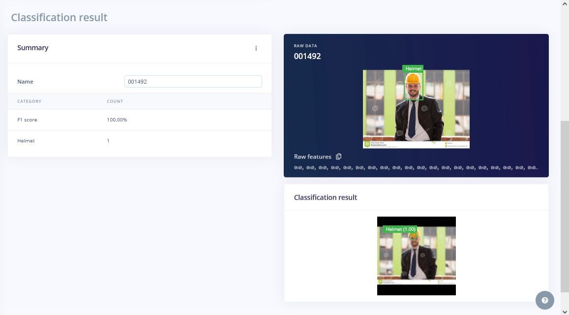 Before a system can recognize safety violations, it will need to be trained to understand what people look like both with and without safety helmets. For this purpose, Raza and Fadeeva tracked down a small, publicly available image dataset consisting of 160 images taken in industrial settings. These images were uploaded to Edge Impulse Studio using the Data Acquisition tool, which automatically split them into training and test sets.