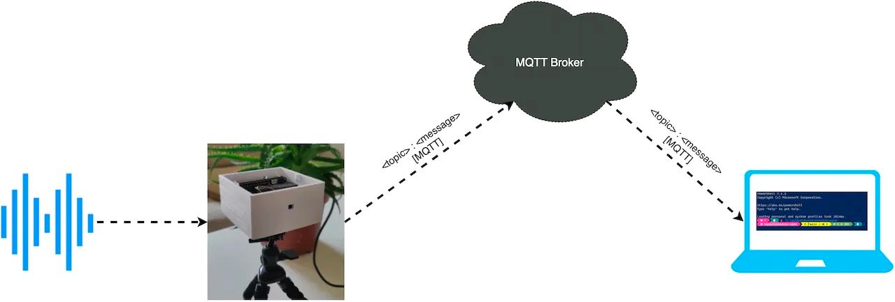 At a high level, Verma’s device would need to capture audio samples, classify the audio with a machine learning algorithm to determine if gunfire was detected, then report any positive detections to a remote cloud server. Verma also wanted the device to be inexpensive and compact so that it could be installed in as many locations as possible. Based on past experience, he knew that Arduino development boards would be ideal given these constraints. Being a firm believer that the only thing better than an Arduino is two Arduinos, Verma chose to use both the Nano 33 BLE Sense and a Portenta H7. Both come equipped with a microphone, which allowed him to create a more sensitive device that captures audio from multiple sources. Each board is also well suited for running local machine learning inferences, so they can both run a copy of the detection algorithm in parallel for the fastest detection times. Since only the Portenta H7 has a WiFi module to transfer results to the cloud, the Nano 33 BLE Sense communicates its findings via Bluetooth to the Portenta H7, which then relays all the information to the cloud server.