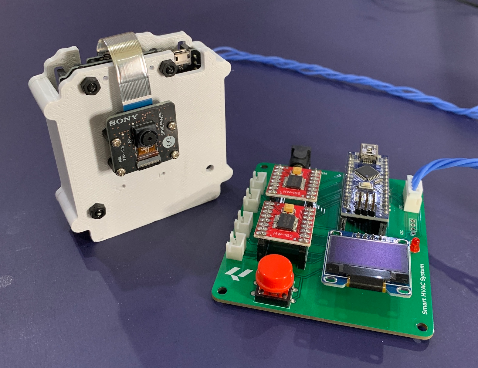 The Sony Spresense main board was chosen as the hardware platform. It has a six-core Arm Cortex-M4F processor, 1.5 MB of SRAM, and 8 MB of flash memory that make it well-suited for running image processing algorithms at the edge. It is also loaded with available GPIO pins that can be used to interface with any arbitrary external system, like Suryo’s HVAC controller. The main board was paired with a Spresense camera board that can capture high-resolution images at up to five megapixels.