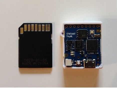 Verma kept the bill of materials to a minimum by selecting the Syntiant TinyML Board for the build. This development board comes loaded with a NDP101 Neural Decision Processor, a Microchip SAM D21 Arm Cortex-M0+ MCU, and a microphone, which checks all of the boxes for the location identification device — plenty of horsepower to run a tinyML algorithm and a microphone to collect audio samples. While not needed for this project, the TinyML Board has lots of other features, like a six-axis motion sensor and a microSD card slot for storage.