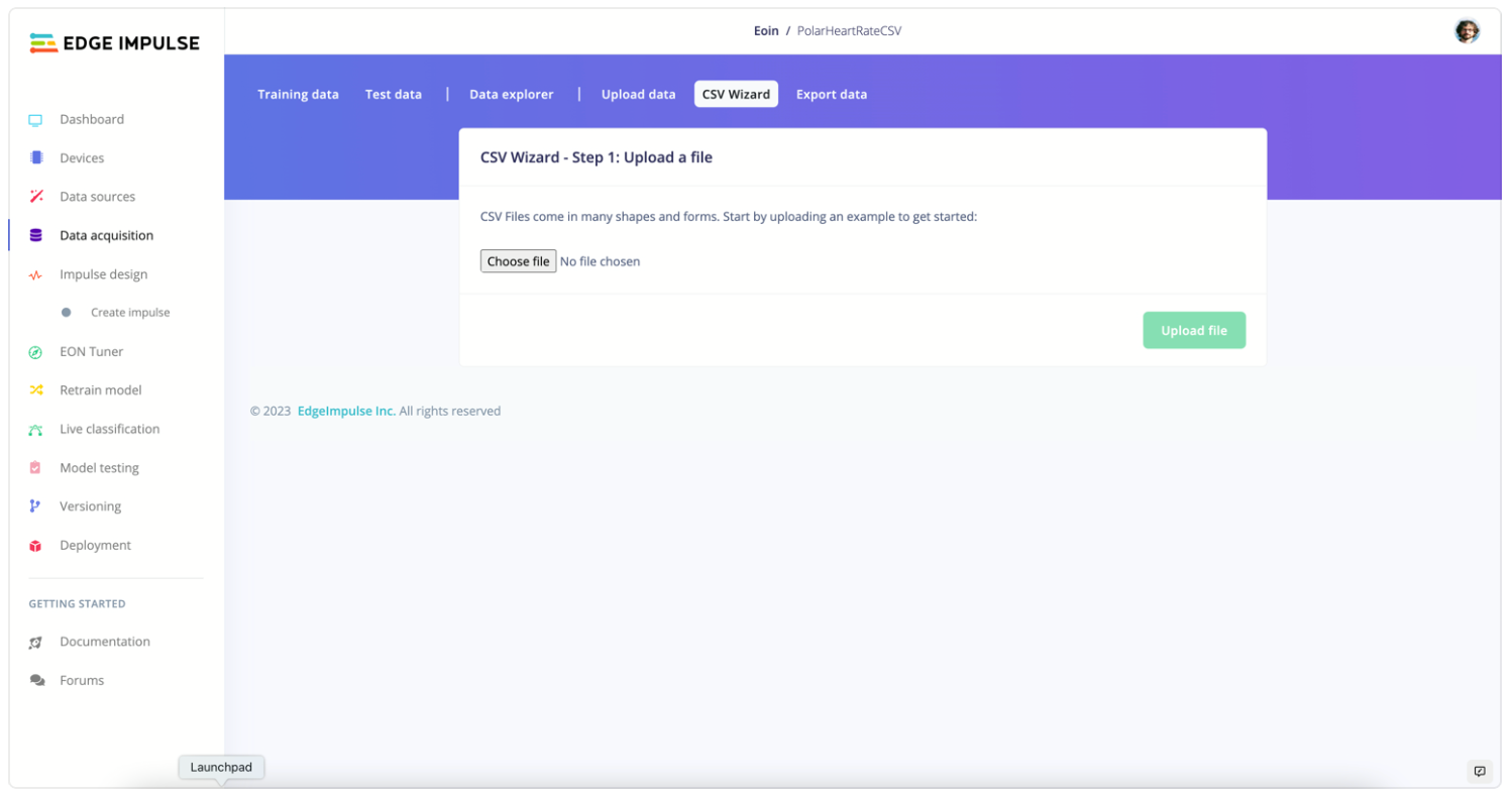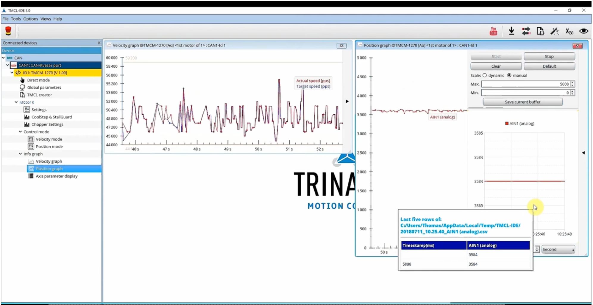 Analog Devices provides a software stack called TMCL-IDE to interface with and capture data output by Trinamic motors, making it easy to upload custom firmware applications as well as visualize sensor output from the motor. The TMCL-IDE application also has the ability to output the data into .csv format, which in turn can be easily imported into Edge Impulse through the CSV Wizard in the Studio.