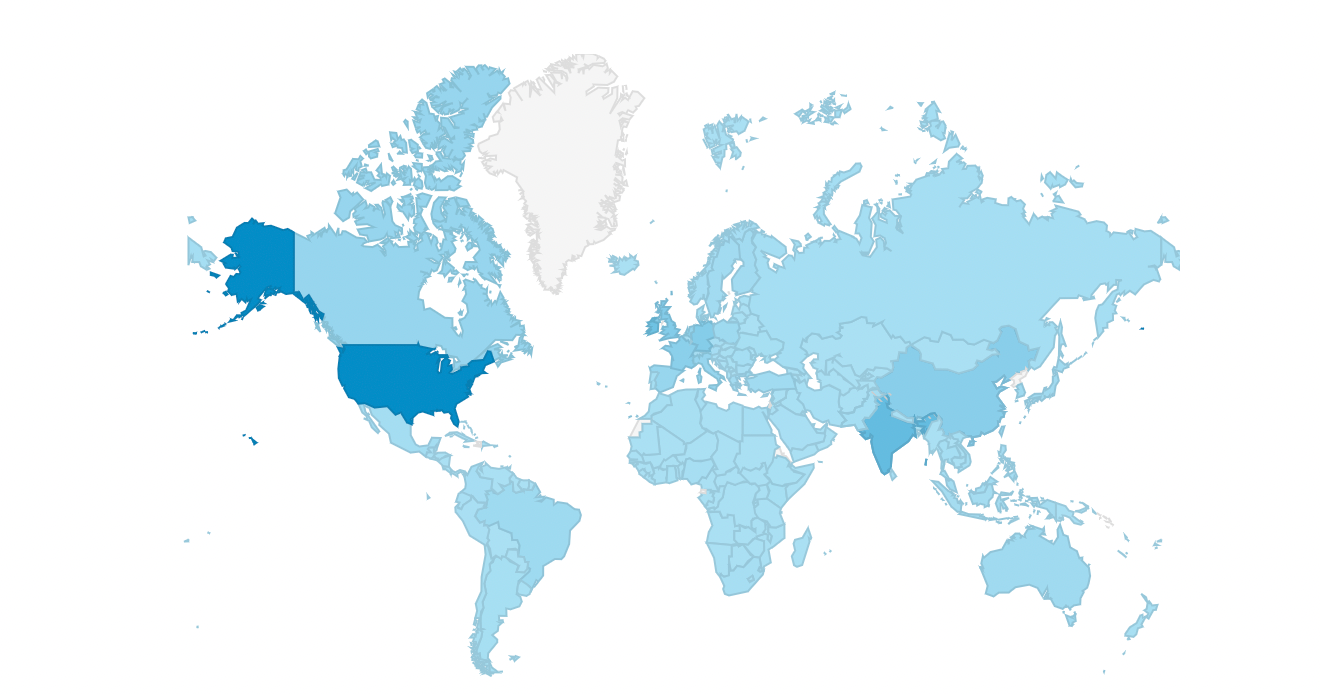 Metrics aside, we’re also impressed by how global our community has become. According to Google Analytics, we have had visitors from every country on Earth except Western Sahara, Greenland, Eritrea, Haiti, and North Korea. The most popular countries have been the U.S., India, UK, Germany, and China.