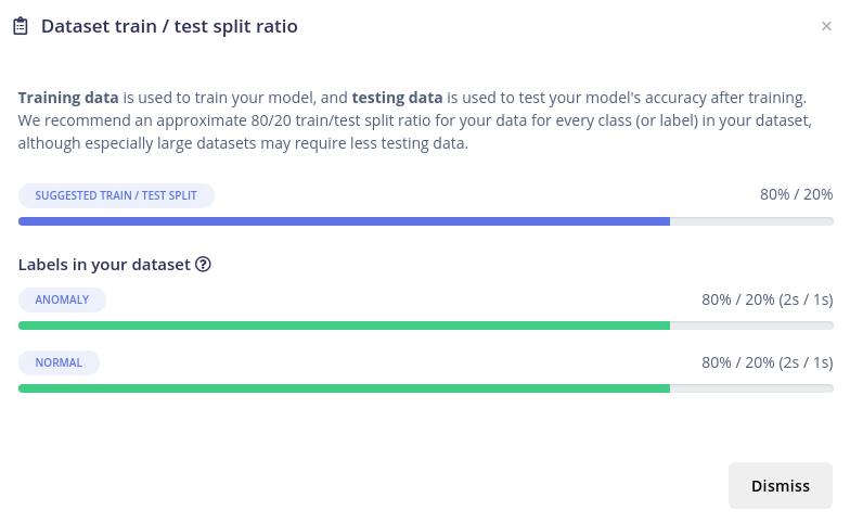 Once you’ve added enough data samples, you’ll need to label them (e.g. bad/good) and split them equally between the training data and testing data categories.