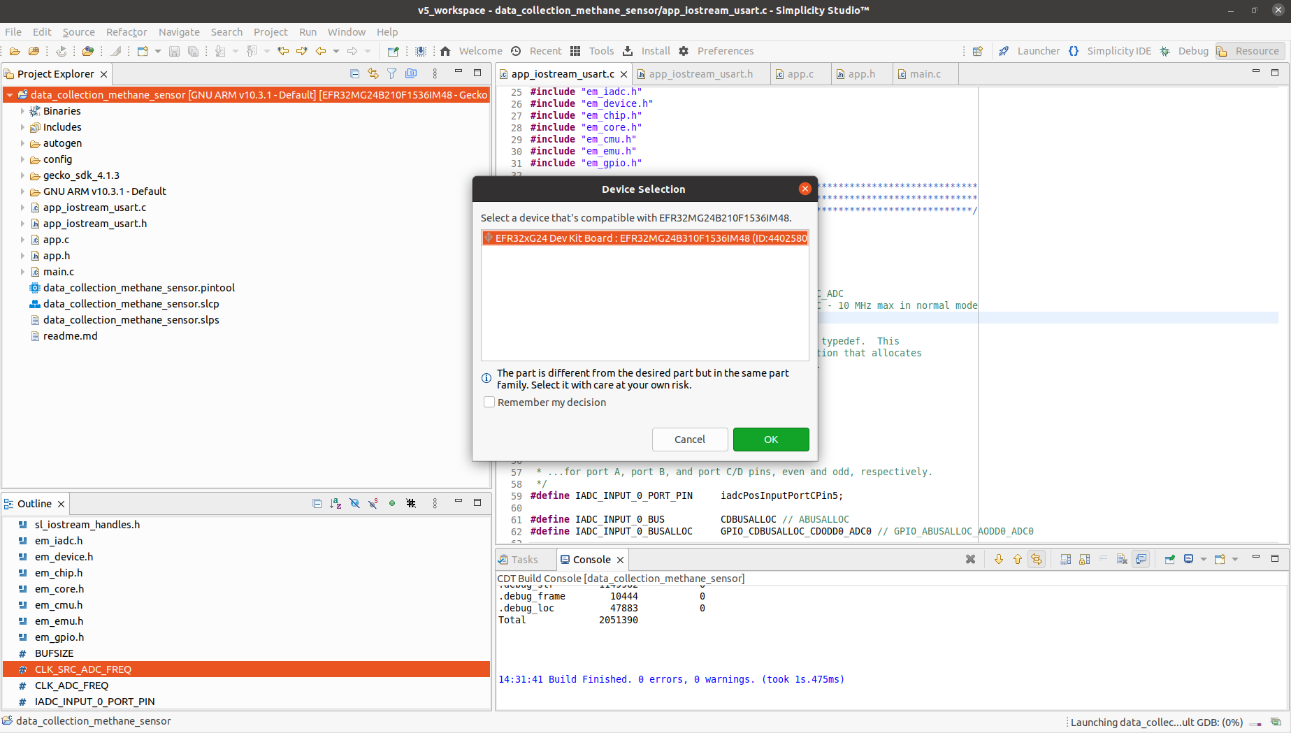 To keep things as simple and inexpensive as possible, the goal was to have this algorithm running directly on the EFR32xG24 Dev Kit, with no reliance on the cloud or external systems via a wireless connection. Edge Impulse fully supports this development board, so making that happen was as easy as clicking on the deployment tab and choosing “Simplicity Studio Component." This created a downloadable package that contains everything that is needed to run the full machine learning data analysis pipeline.
