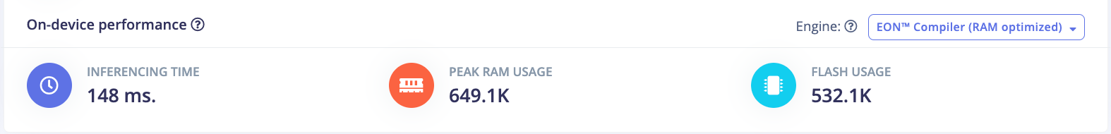 Using only the TensorFlow Lite model, the inference performance is already impressive, netting an FPS of about 6.7 at 224x224 input resolution to the model. However a large amount of RAM is utilized at 1.4MB. Since the RA8D1 has 1MB of internal SRAM, this model wouldn’t be able to run as-is. This is where Edge Impulse’s EON compiler (RAM optimized) comes in, saving nearly 54% of RAM usage and thereby allowing NVIDIA TAO models to execute on MCUs such as the RA8D1.