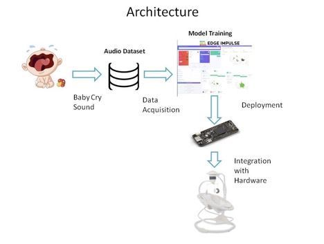 Momentarily emerging from a delirium brought on by sleep deprivation, Sivan had the idea to use machine learning to recognize the sound of a baby crying, and to use that as a signal to automatically turn on the rocker swing. Starting the swing immediately would help the baby to calm down before the crying got completely out of hand, and would also save Sivan from having to get up to comfort the child. Hoping to get a good night’s sleep for a change, Sivan turned to Edge Impulse to help build the machine learning algorithm quickly.