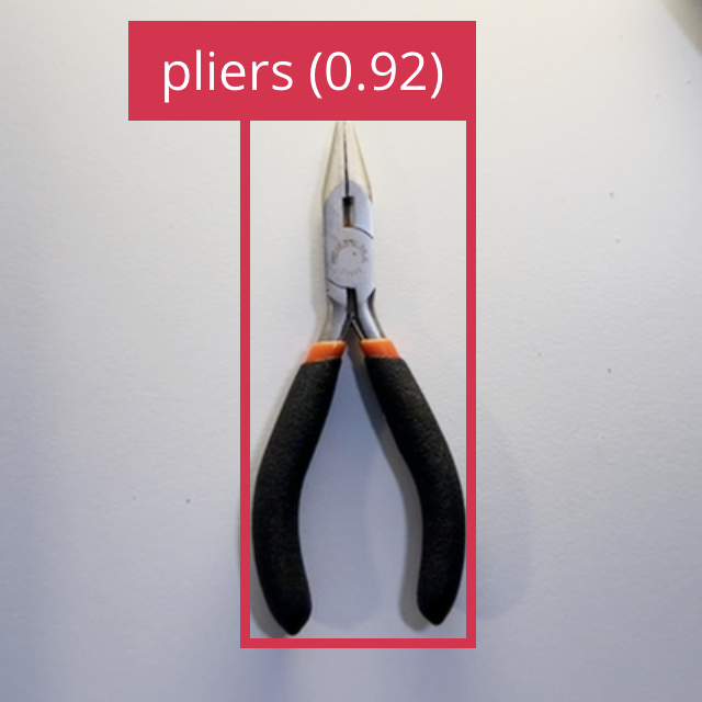 You should see bounding boxes and labels appear in real time as RubikPi detects each tool using a model trained entirely on synthetic data.
