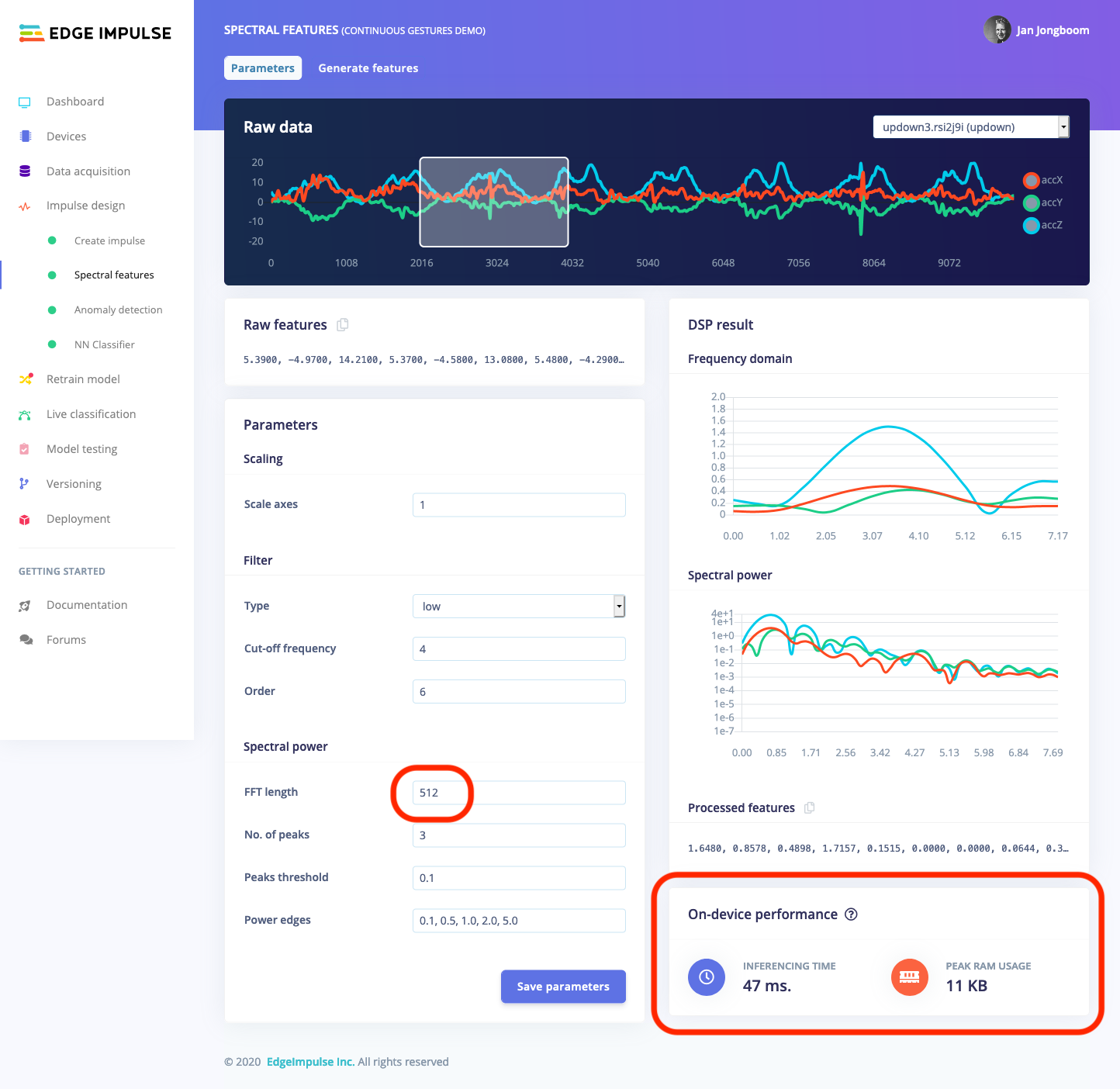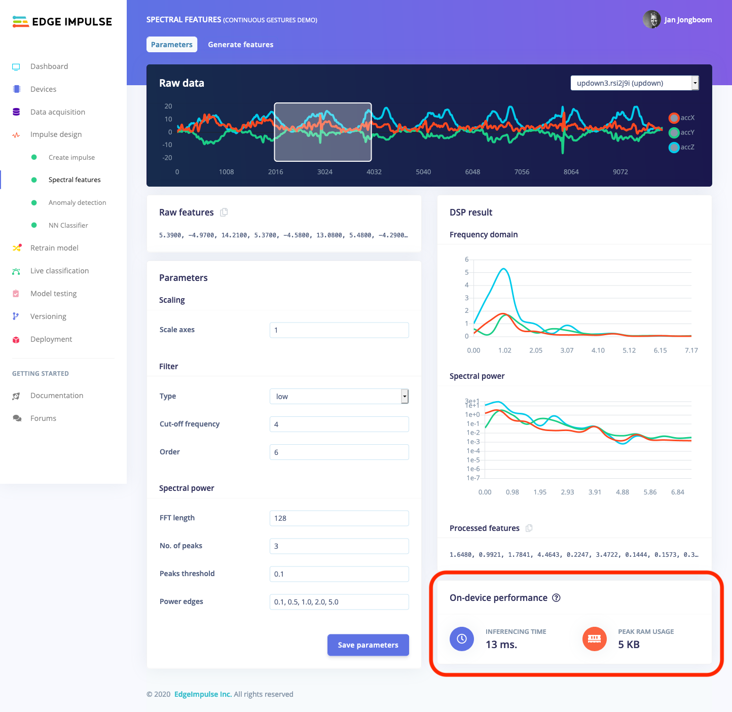 At Edge Impulse we believe that signal processing is key to embedded Machine Learning and we try to leverage the decades of industry knowledge around signal processing before even applying a machine learning model. To help developers choose better parameters for their signal processing blocks, and to show whether a model will fit the latency and memory constraints that their application has, we now introduce real-time performance metrics for all processing blocks in the Edge Impulse Studio.