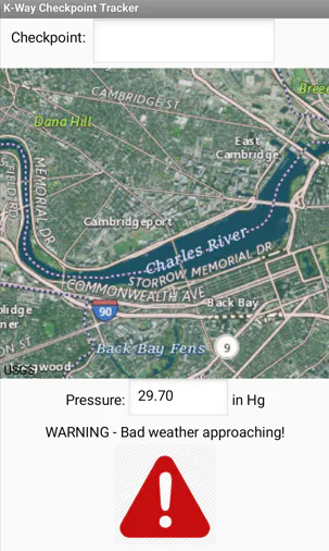 The Arduino was used in concert with a smartphone via a wireless Bluetooth Low Energy connection. When the wearer draws a letter “C” (for “checkpoint") in the air, the phone’s GPS receiver is leveraged to determine the precise location and plot it on a map application for later use. Similarly, when the barometric pressure drops below a predefined threshold, that fact is reported to the phone so that it can alert the wearer of the jacket that a storm’s a-brewing.
