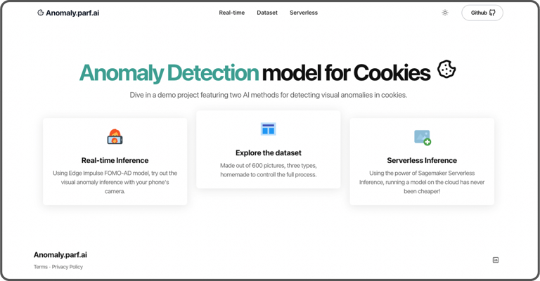 To put the finishing touches on the project, Lescaudron built a website using Astro with React and the AstroWind template. This website provides an interface to run inferences with either EfficientAD or FOMO-AD. It also provides tools to explore the dataset and evaluate the models.