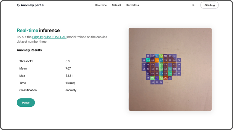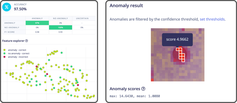 Last, but certainly not least, Lescaudron tested FOMO-AD. Since this algorithm is natively supported by Edge Impulse, the entire process, from uploading data to training, optimizing, and deploying the model could be fully automated with the Edge Impulse API. The pipeline will automatically find the best visual anomaly detection model for the given dataset automatically, eliminating the need for a tool like MLFlow. As was the case with EfficientAD, FOMO-AD does not need anomalies in the training dataset. This factor saves a lot of time and effort when compiling the dataset.