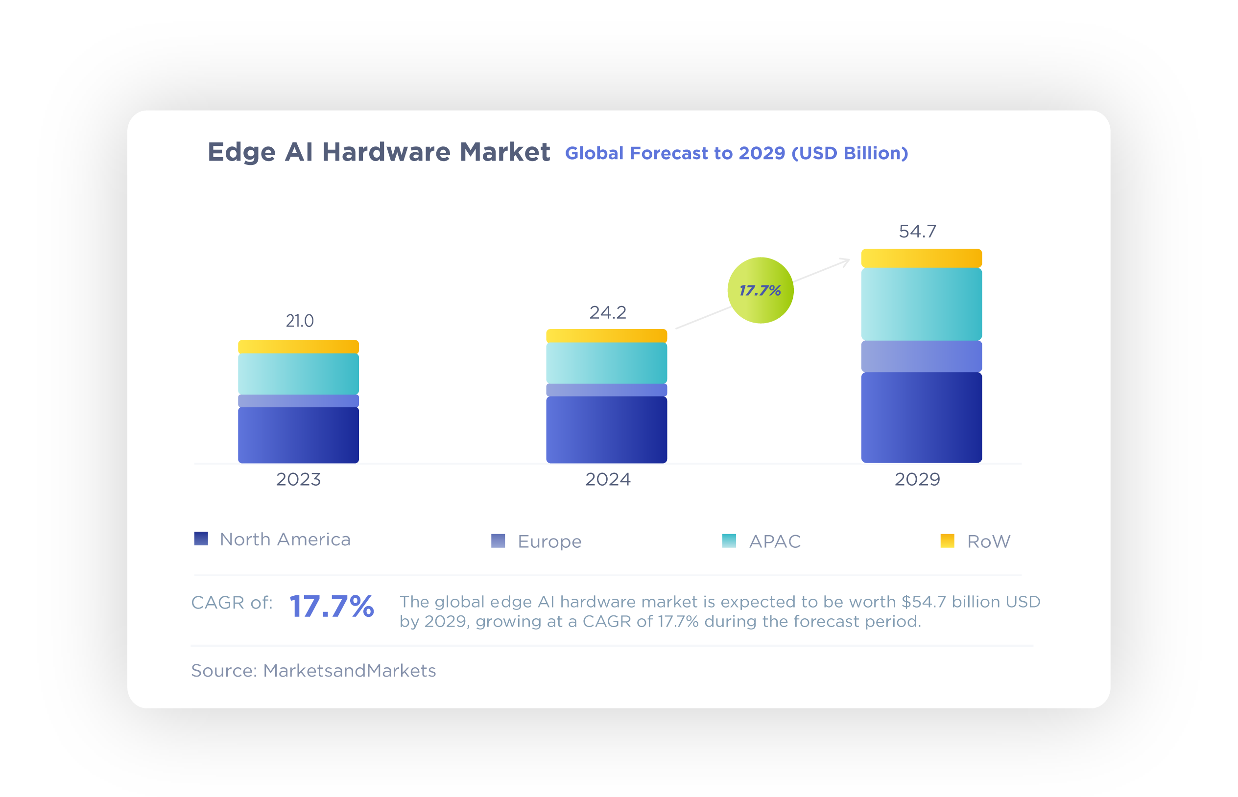 According to MarketsandMarkets, the global edge AI hardware market is expected to be worth $54.7 billion USD by 2029