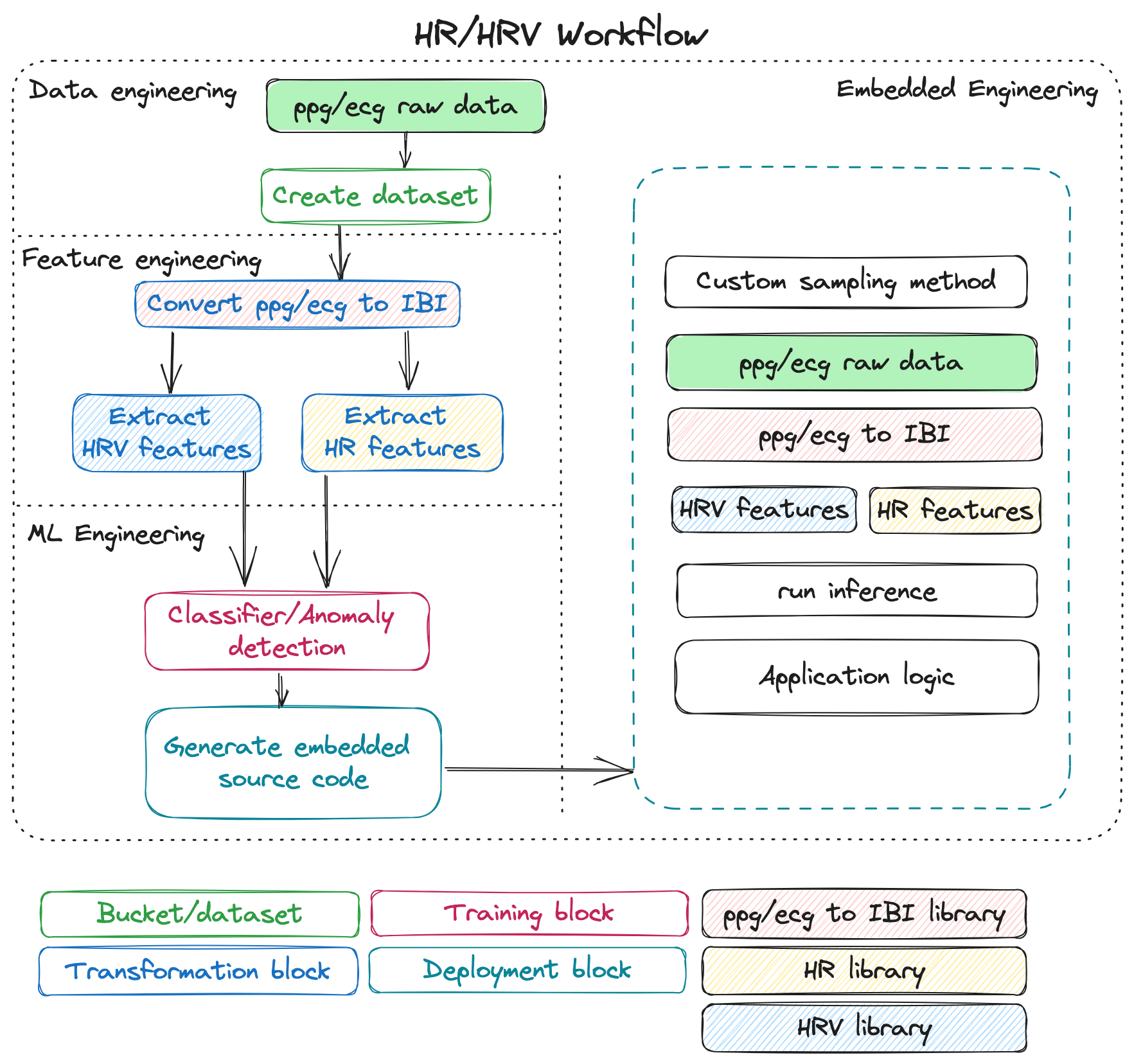 For enterprise users, Edge Impulse offers libraries for HR and HRV feature generation, accessible both within the Edge Impulse Studio and on-device. Additionally, we provide blocks that facilitate training with raw PPG/ECG data within the Studio.