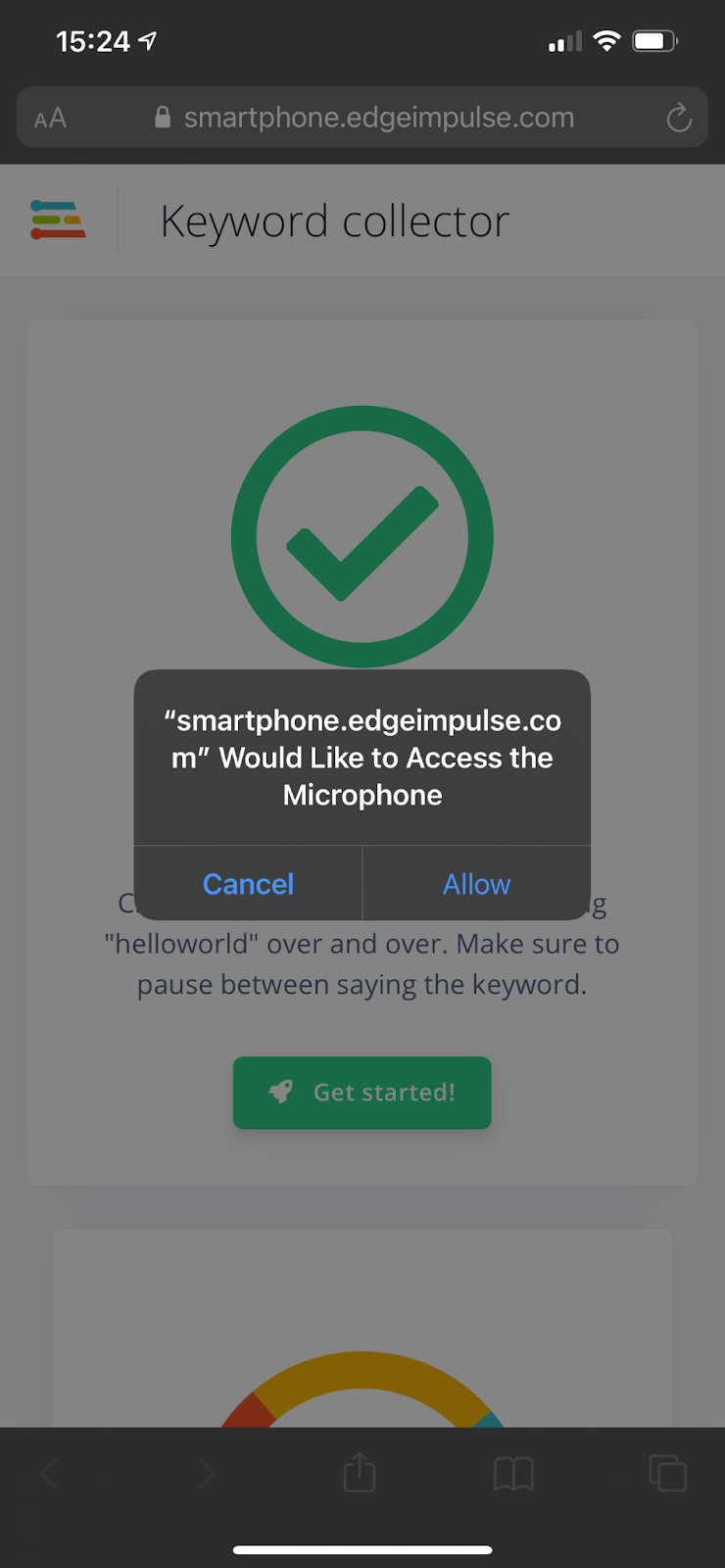 3. Click Get started! and give your phone’s web browser access to your microphone by clicking Allow:
