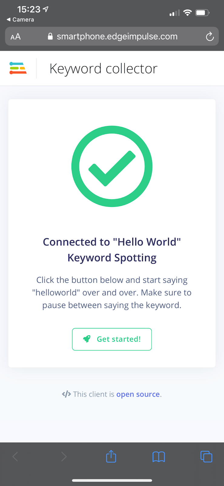 2. Your phone’s web browser should open and connect successfully to the keyword collector application: