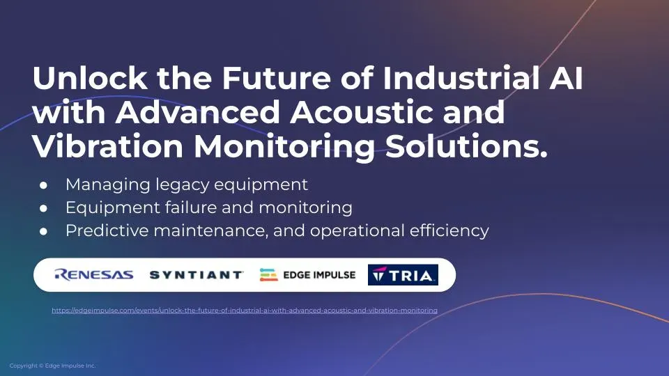 The industrial world is undergoing rapid transformation as edge AI solutions become more commonplace, helping to increase operational efficiency, reduce downtime, and ensure worker safety. In a recent webinar, Edge Impulse was joined by Renesas, Syntiant, and Tria (formerly Avnet Embedded) to discuss how small microcontroller-based devices such as the Tria RaSynBoard enable on-device AI in small, low-power packages.