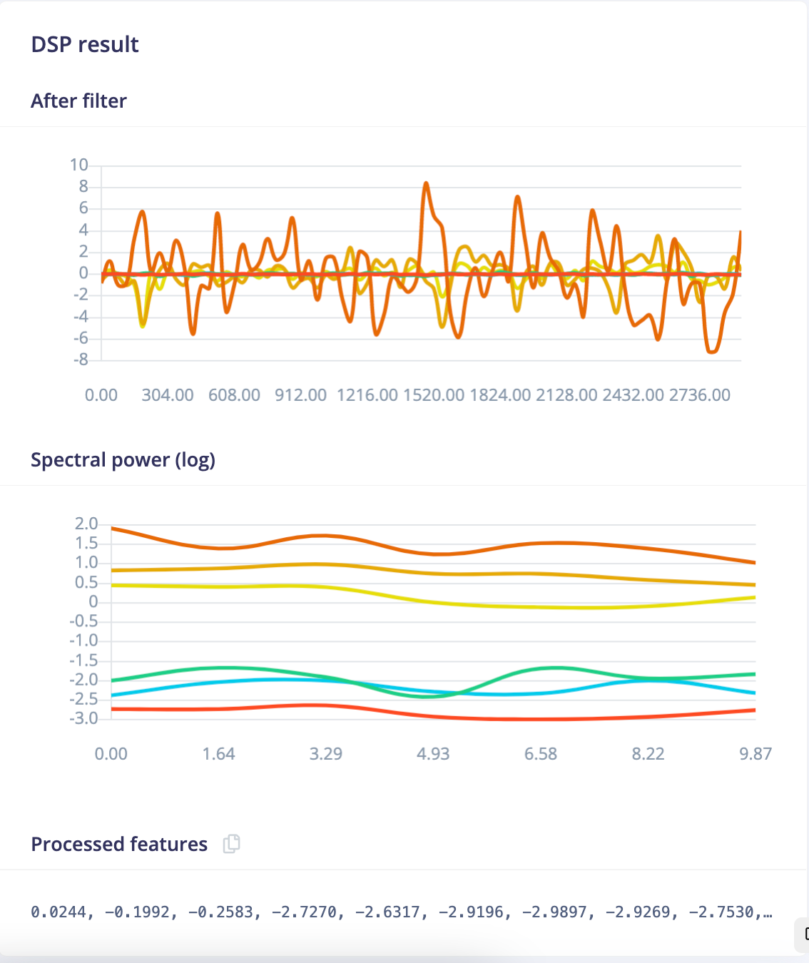 To give the model some intelligence, it needs example data to learn from. Salerno developed an Arduino sketch that streams accelerometer data over Bluetooth to a laptop that writes the measurements to a file. Using this setup, he streamed data with the pallet-wrapper loaded with a dozen different weights. A total of 30 seconds of sample data was collected for each weight level. WIth the training data saved as CSV-formatted files, they were ready to be uploaded to Edge Impulse using the data acquisition tool.