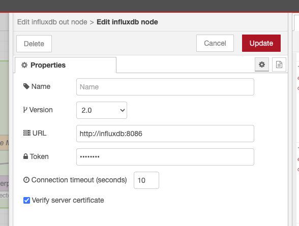 Edit the influxdb node