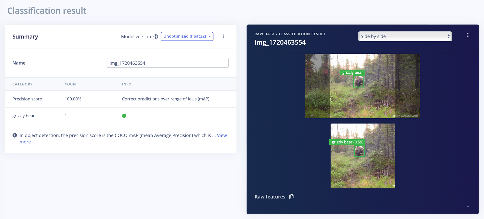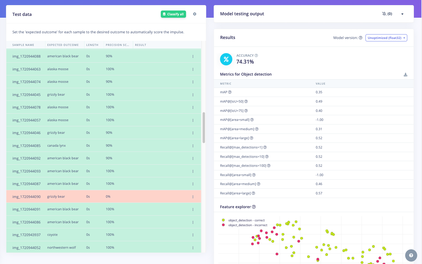 - Or, update the dataset for the object detection model so that it now has the identified species (e.g. "black bear" and "lynx") but also still identifies the general "animal" to keep separating any unknown animal. Note: In this step we'd also want to relabel any images with black bears or lynxes that were previously used as "animal", so optimally that dataset should have the species as part of the filename or as metadata. Then retrain the model and update the deployment.