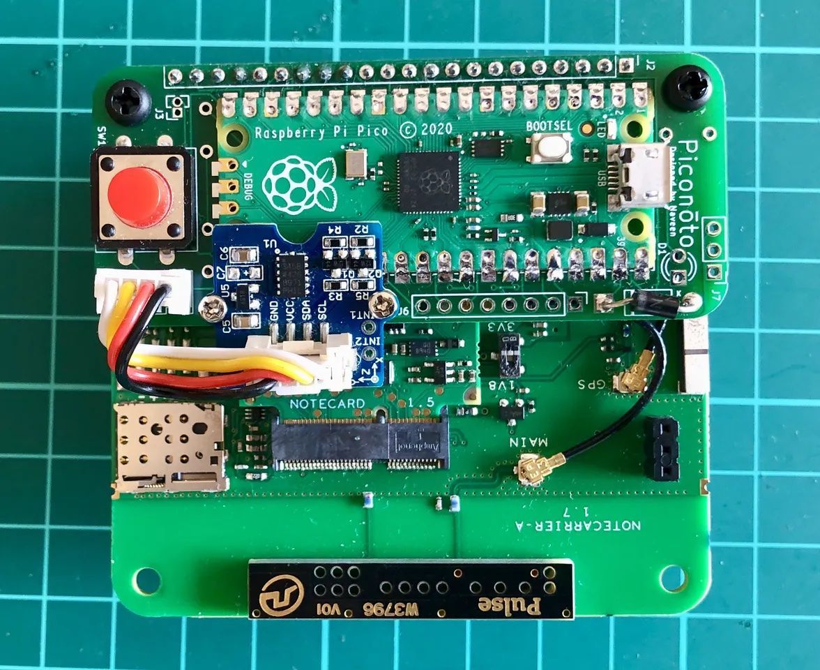 Kumar started with a Blues Wireless Notecard to add cellular connectivity to untether the device from a base station, and GPS to provide location information when the wearer is unable to provide it. He included a button that can be pressed to manually request assistance, but for the cases where that is not possible, with the help of Edge Impulse he designed a machine learning pipeline that can detect falls and automatically send a request for help. A Raspberry Pi Pico was included to provide the main processing horsepower, and a three-axis digital accelerometer provides environmental sensing information to the machine learning algorithm. A custom PCB was designed to tie all of the components together into a single, tidy, battery-powered package.