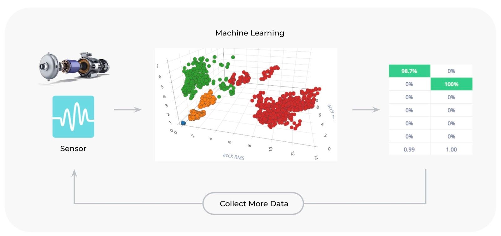 Data-driven engineering starts with high-quality, usually labeled data, for example on machine normal operation and failure modes from the lab. Instead of coding by trial and error, we choose appropriate feature extraction and train an ML algorithm using our dataset. Instead of hand-crafted unit testing, we use data to test the result. To improve a machine learning algorithm, the vast majority of time and effort will go into extending or improving the dataset. Data-driven engineering with tools like Edge Impulse will become a standard part of the engineering toolkit, complementing hand-crafted code and other design automation techniques.