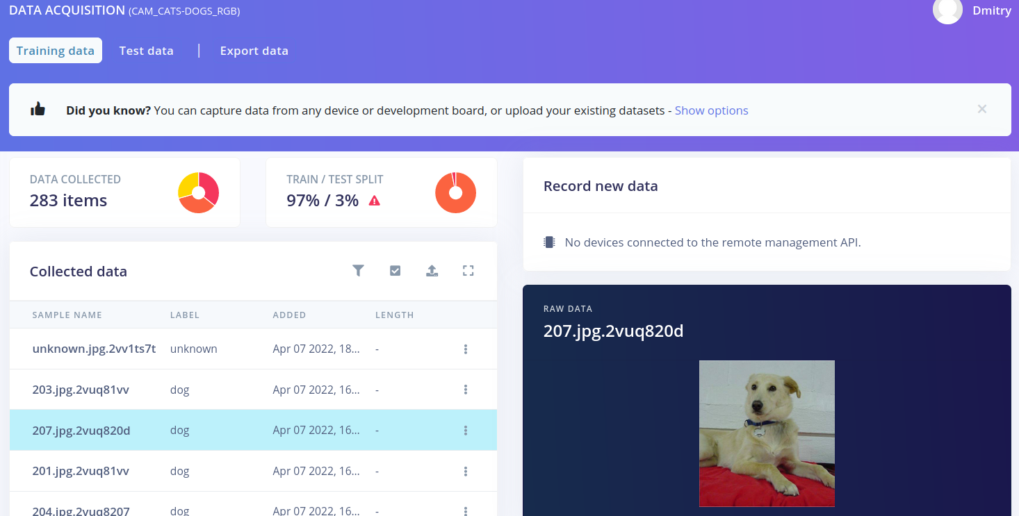In the video above, we demonstrated sample collection with ESP-EYE camera — you can collect more data yourself, or use one of the freely available datasets like this one to build an image recognition project in under one hour!