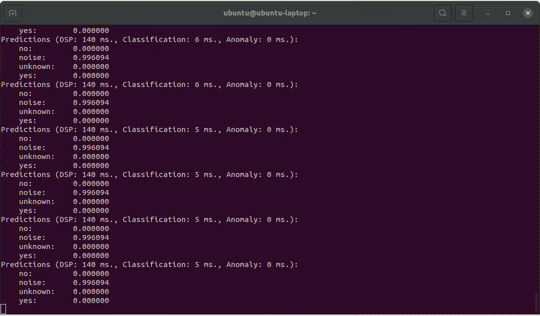 Predictions (DSP: 140 ms., Classification: 5 ms., Anomaly: 0 ms.):