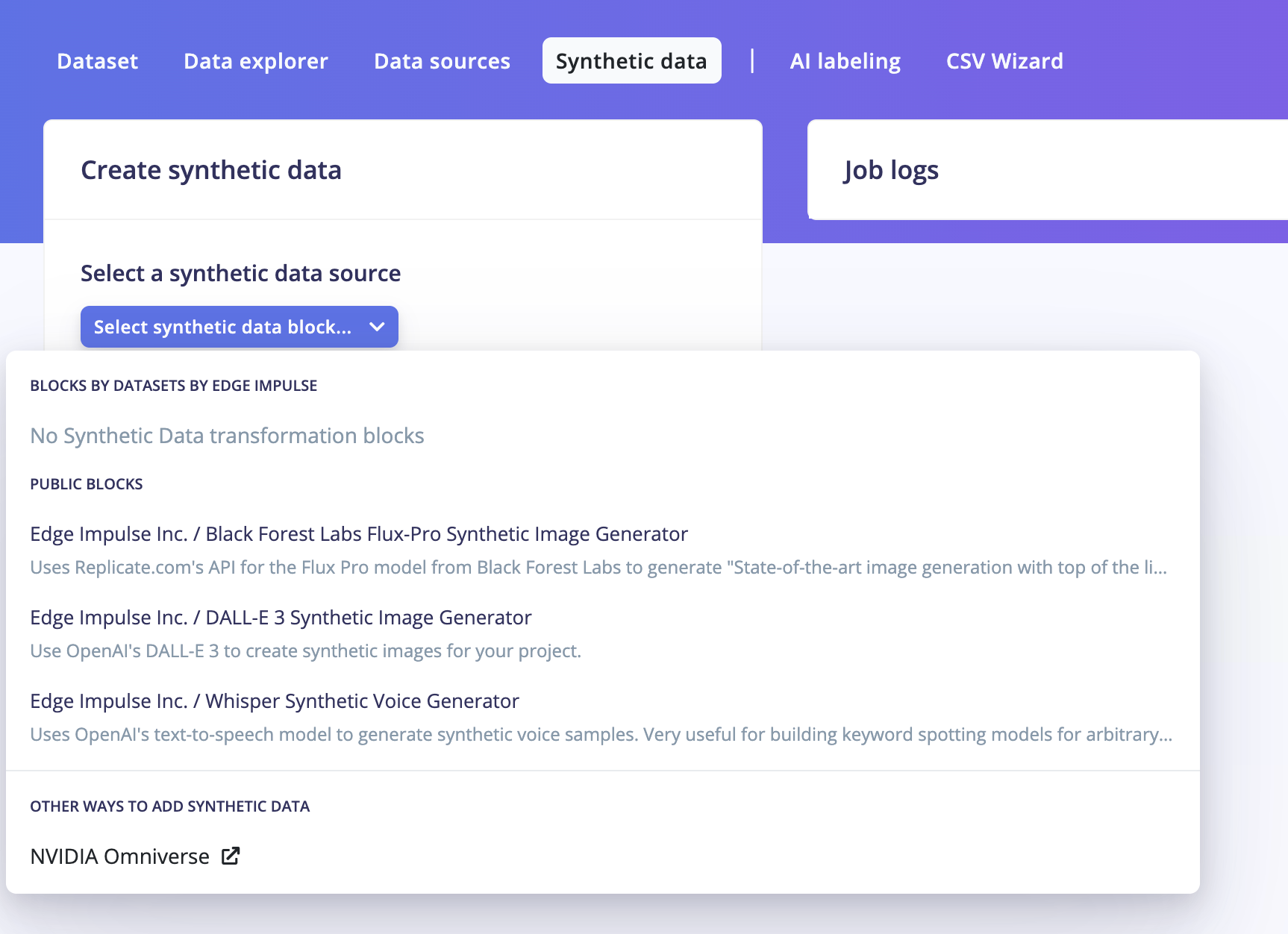 We are proud to announce that synthetic data generation is now available inside the Edge Impulse platform, enabling a new and efficient way to work with LLM-generated images, audio, and voice to enhance your edge AI models.