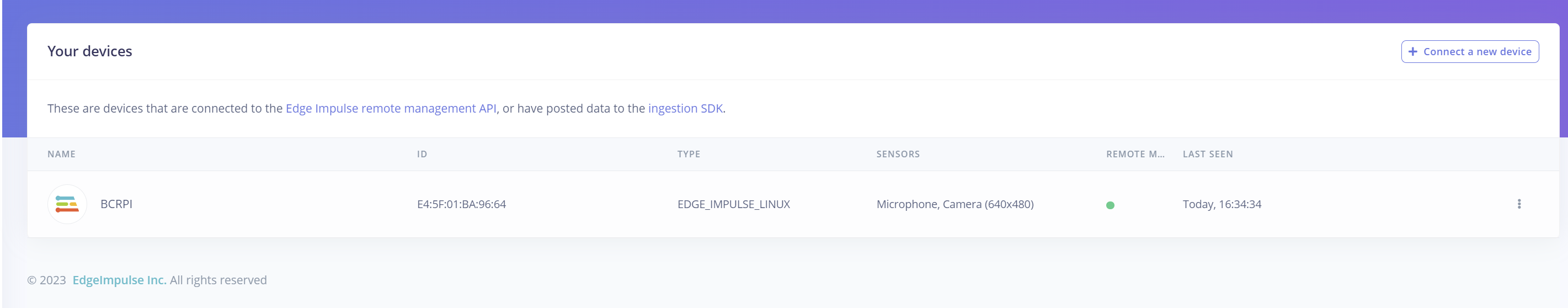 The final stage of the benchmarking is to run the model on the BrainChip Raspberry Pi development kit. To do this we first need to install the Edge Impulse client on the board, using these steps.