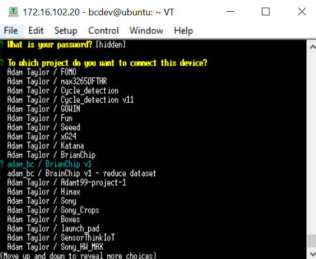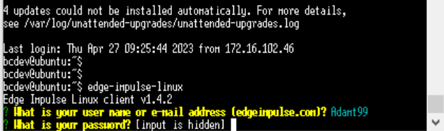 Once Edge Impulse is installed, we can connect the Raspberry Pi board to our system using the Edge Impulse client, enter our Edge Impulse credentials, and select the project.