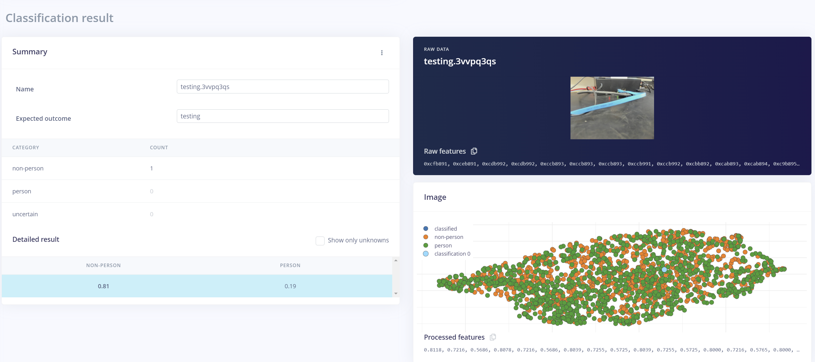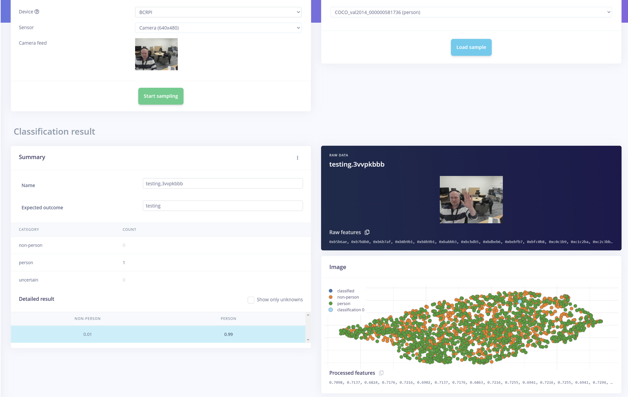 With the board connected we can run live classification where images are captured and processed on the board and results displayed in the edge impulse studio. This step enables us to use live data from the field and make any necessary adjustments to the configuration and training of the network.