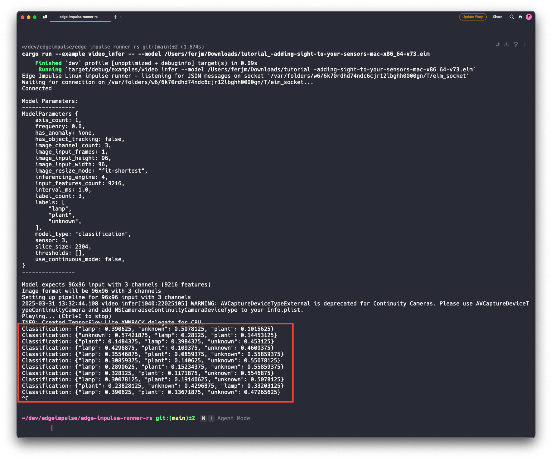 • Model Inference: Run Edge Impulse models (.eim files) seamlessly on Linux and macOS