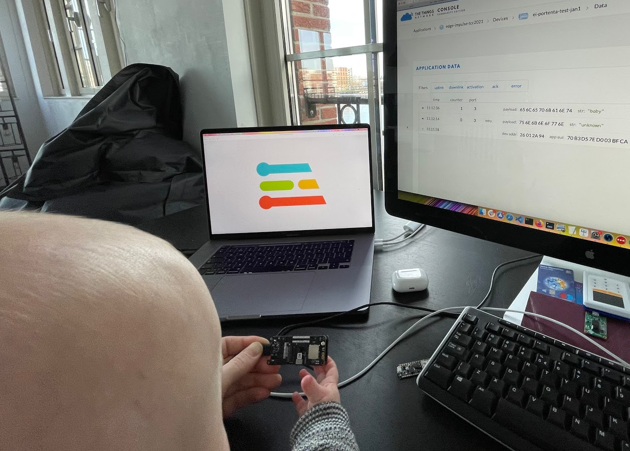 Jan Jongboom is the CTO and cofounder of Edge Impulse. He was happy to get some engineering help from Sami (aka the baby).